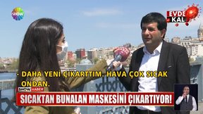 Sıcaktan bunalan maskesini çıkarıyor!
